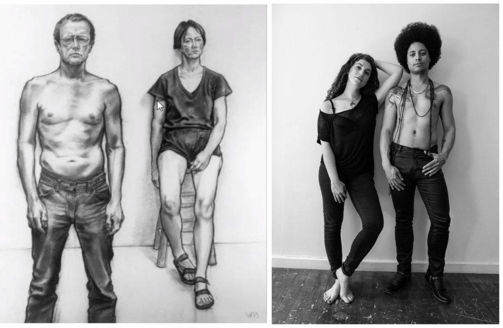 This photograph of Jose James and Taali, taken by photographer, Janette Beckman, was used as a basis to emulate the style of American artist, William George Beckman. You can see an example of his work on the left and the original photograph on the right. It was incredibly hard, actually impossible, to achieve the subtlety of Beckman’s marks.
