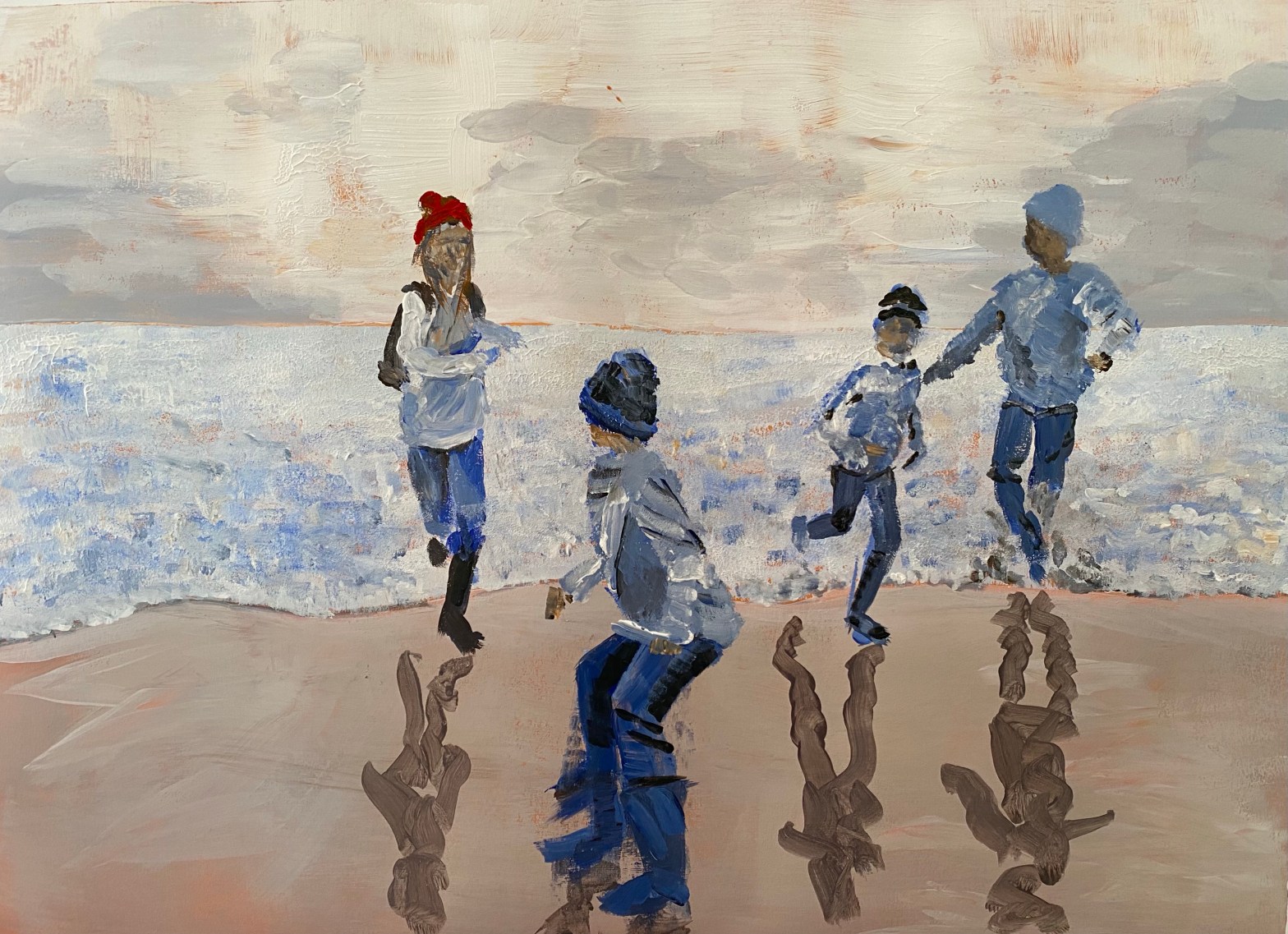 I saw this photo in the paper and loved the sense of family and fun that jumps out. The light and shadows were fun to catch. I managed to paint in a loose style that day which I don’t find easy!