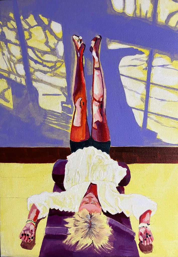 Grateful for her ‘job’ teaching yoga to lovely clients in a wonderful space.