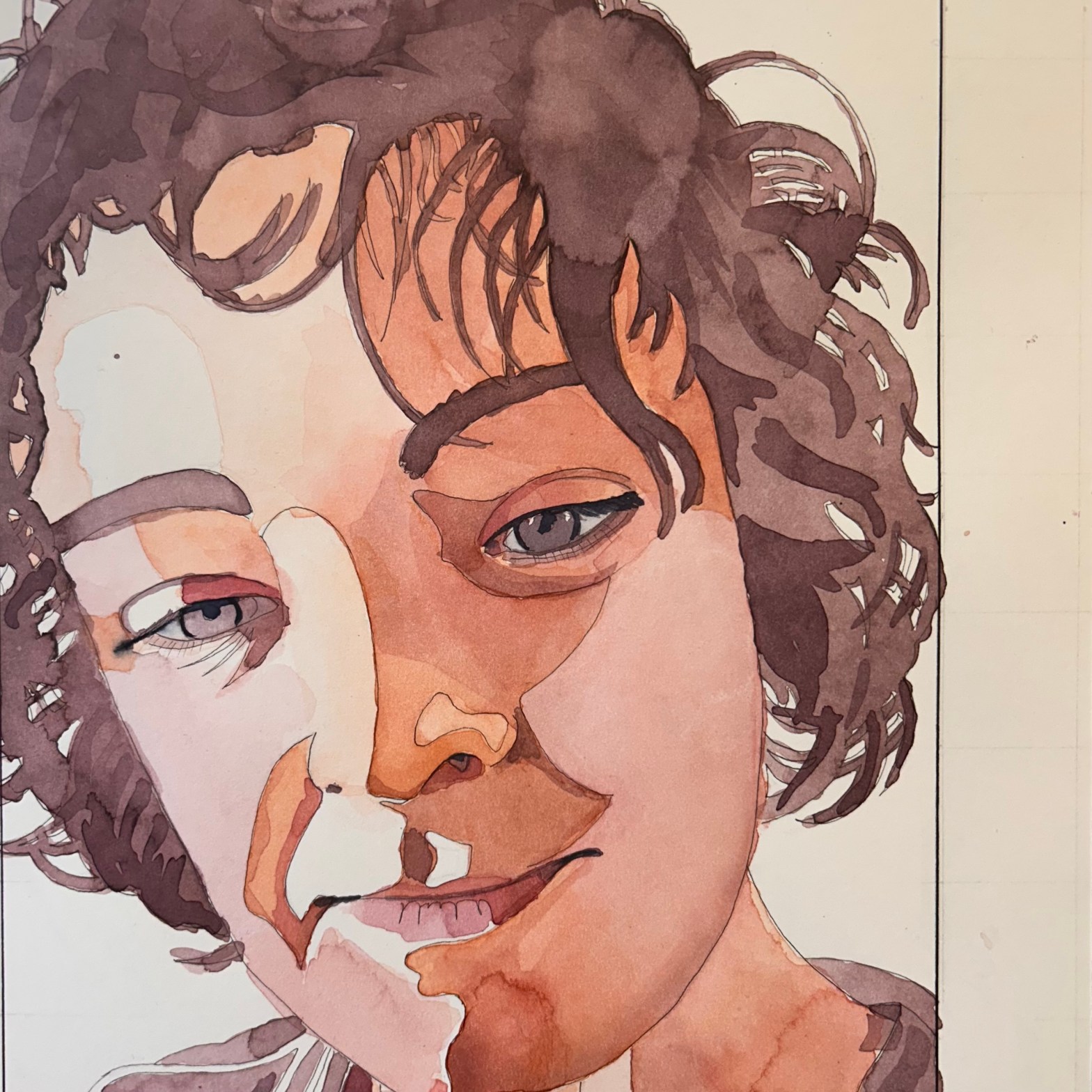 Following on from the excellent Matt Murphy abstract watercolour course, an attempt to paint a watercolour portrait using only 4 pre-mixed hues, with a waterproof ink outline. A3.