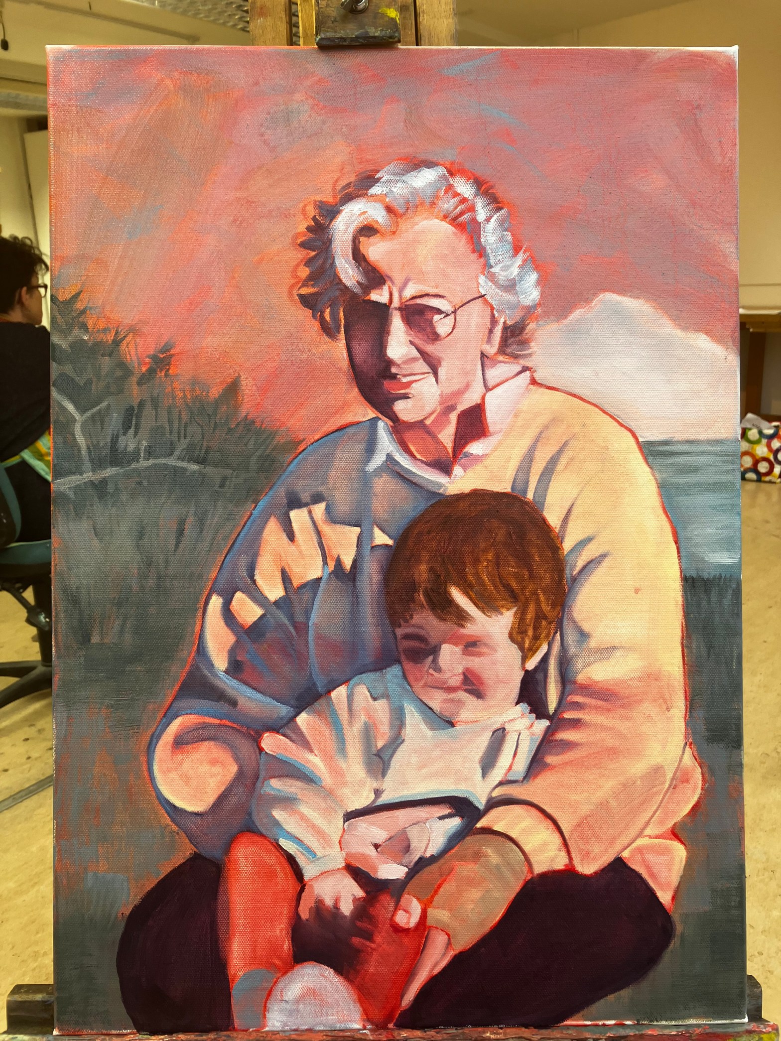 Fantastic weekend art course at West Dean College with Amy Dury painting from treasured family photographs. This is one of the few images we have of Polly with her paternal grandmother, Joy Waldron. Sitting together up on Golden Cap in the evening sun. I loved painting Joy’s hands holding Polly with such tenderness, and Polly’sContinue reading “On Golden Cap”