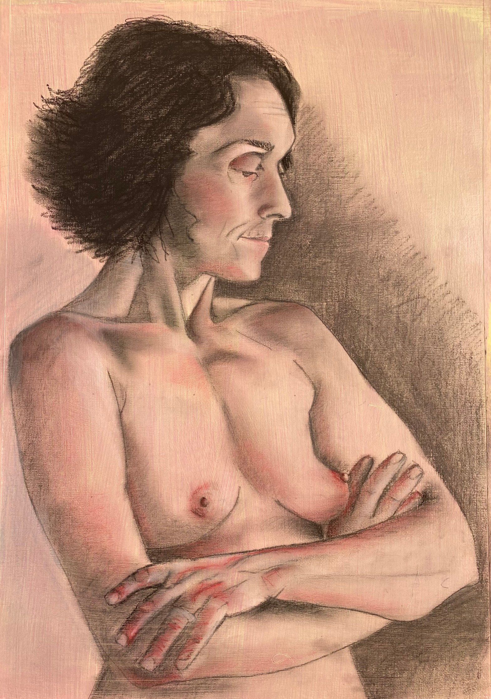 I’m exploring the idea of landscape with different media. This time using pastel pencils. I’ve never found it easy to portray landscape with colour but the liquid amber tree in our garden is so gorgeous, I had to try.